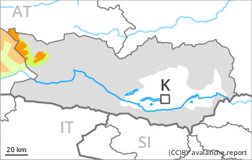 Individual avalanche prone locations are to be found in particular on northwest to north to northeast facing aspects.