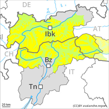 Avalanches can in some cases be released in the old snowpack and reach quite a large size on west, north and east facing slopes. This applies even in case of a single winter sport participant in some cases. The avalanche prone locations are to be found in particular above approximately 2000 m. Caution is to be exercised in particular at transitions from a shallow to a deep snowpack, when entering gullies and bowls for example.