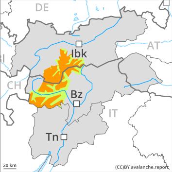 Avalanches can in isolated cases be triggered in near-ground layers and reach large size in isolated cases. The avalanche prone locations are to be found in particular on very steep west, north and east facing slopes above approximately 2000 m.