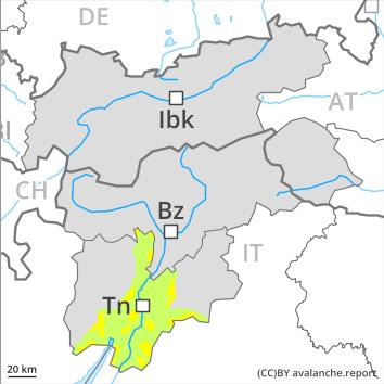 Dry avalanches can be released, in particular by large loads, but they will be small in most cases. Individual avalanche prone locations are to be found on steep shady slopes at high altitude. As a consequence of warming during the day only isolated moist snow slides and avalanches are possible, but they will be mostly small, in the event of solar radiation in particular on extremely steep slopes.